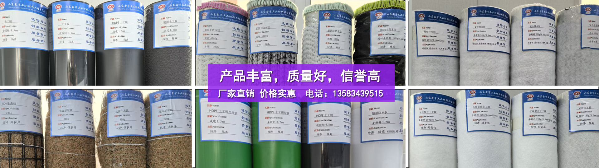 山東鑫宇土工材料工程有限公司生產:土工布,防滲土工膜,膨潤土防水毯,排水板,生態袋,土工格柵等產品,價格實惠,歡迎來我司參觀訂購
